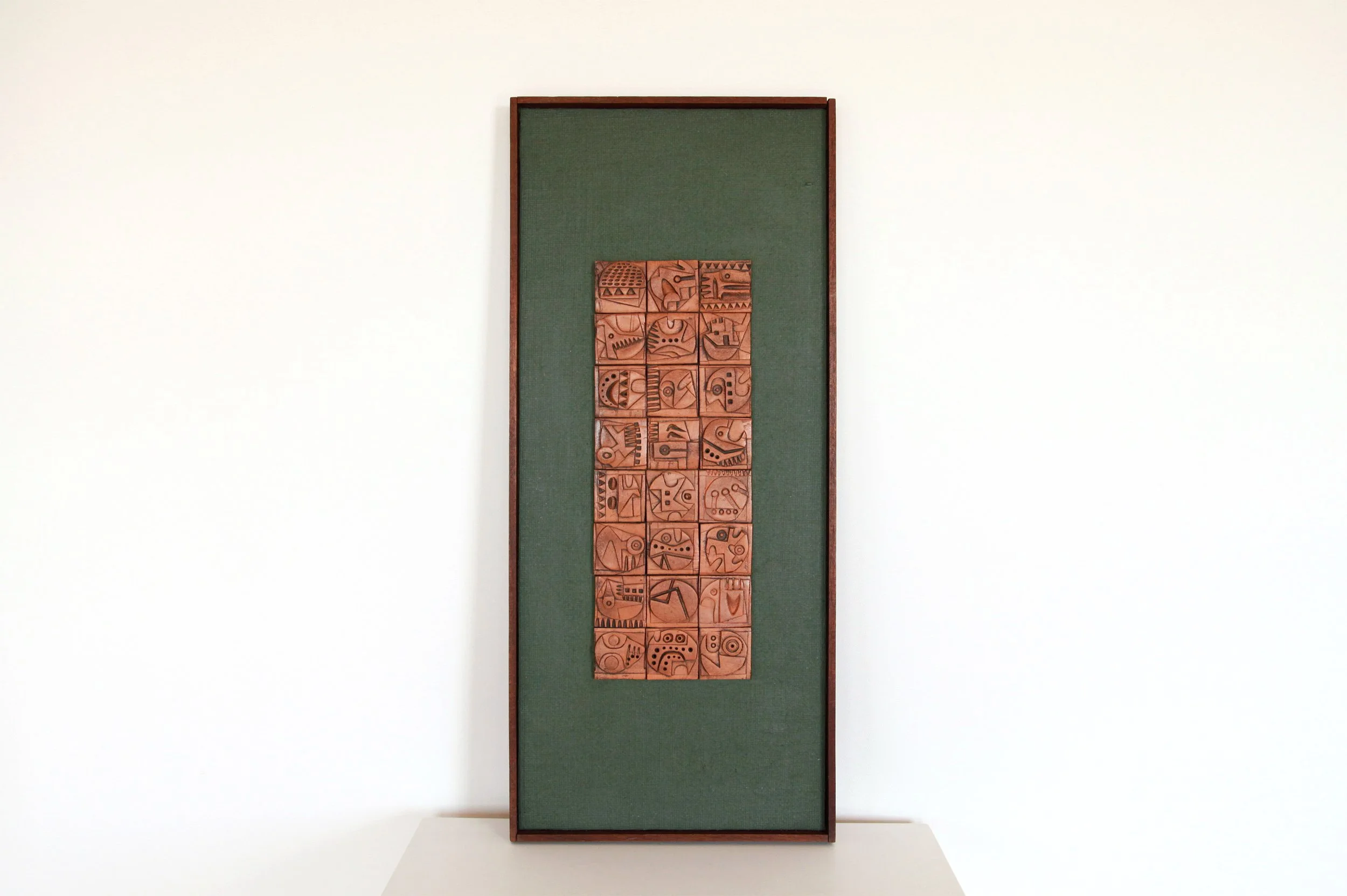 Original panel made by the artist with 24 individually handmade terracotta tiles. Signed on verso.